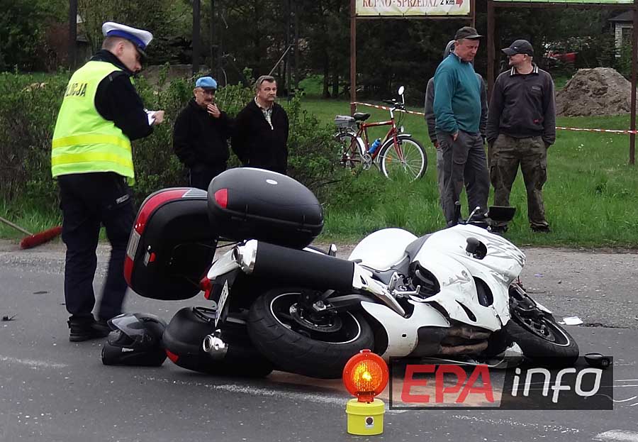 Debil na dwóch kółkach zap…dalał na pewno ponad 100 i się skończyło.Zdecydowana większość motocyklistów (poza bardzo nielicznymi wyjątkami chopperów) to bezmózgi pozbawione wyobraźni i świadomości realiów polskich dróg. Sezon się zaczął to i selekcja naturalna zaczęła działać.
