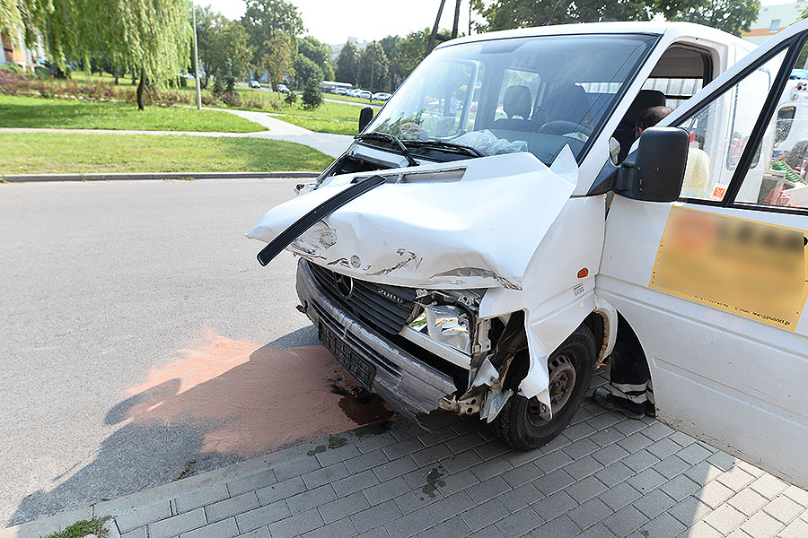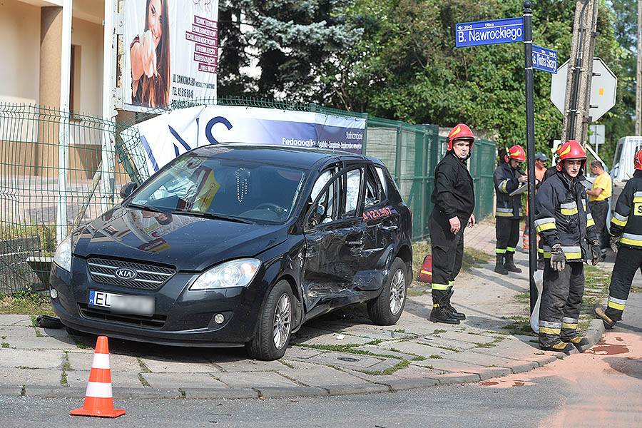 Do wypadku doszło około godz. 16.15 na skrzyżowaniu Nawrockiego i Piotra Skargi. W lewy bok jadącego ul. Nawrockiego od Szpitalnej Kia Ceed wjechał Mercedes. W wyniku uderzenia „Koreańczyk” obrócił się o 90 stopni i zatrzymał na ogrodzeniu posesji. Kierowca osobówki skarżył się na ból w klatce piersiowej. Zajęli się nim ratownicy z pogotowia.