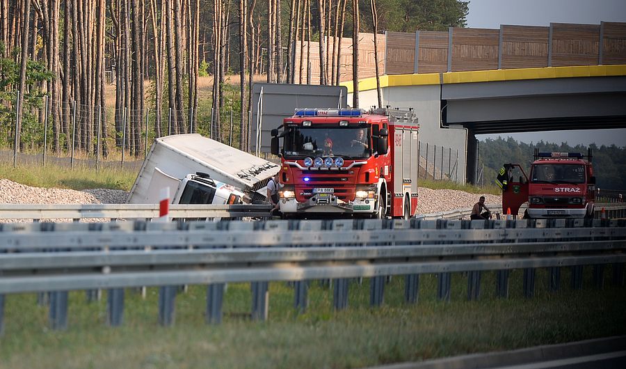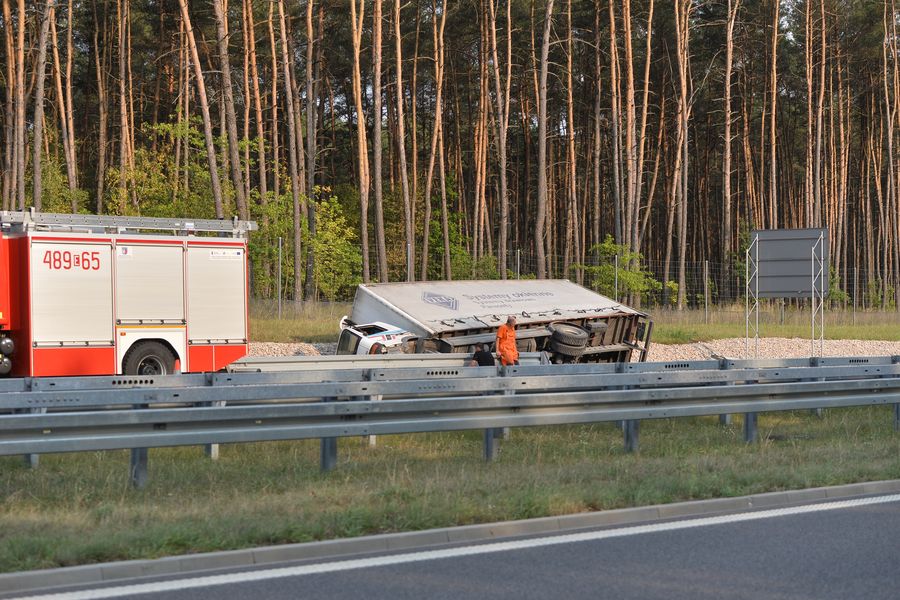 Do wypadku doszło po godz. 16.00 na drodze w stronę Łodzi pomiędzy węzłem Róża a węzłem Dobroń. Na miejsce zdarzenia przyjechała straż pożarna, pogotowie oraz obsługa drogi. Kierowca ma lekkie otarcia i jest poobijany. Służby zabezpieczające wypadek zajęły jeden pas ruchu.