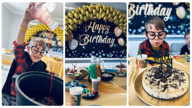 Gdy solenizancik wszedł do swojej urodzinowej krainy Harrego Pottera, czekała na niego Wielka Sala z Hogwartu, a w niej: wystrój, który naprawdę robił wrażenie, złote obrusy na stołach, zastawa Warsztatowni dobrana tak, by wszystko do siebie pasowało, i ozdoby, o jakich marzy każde dziecko. Balony, urodzinowa ścianka i jeszcze więcej balonów, które w przerwach od kolejnych atrakcji stanowiły największą atrakcję.
