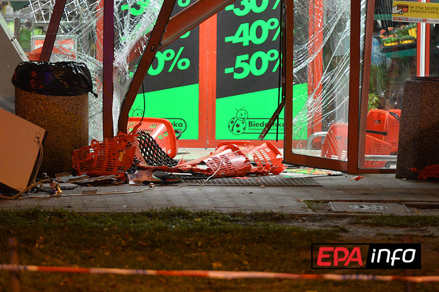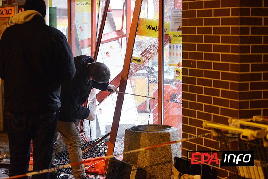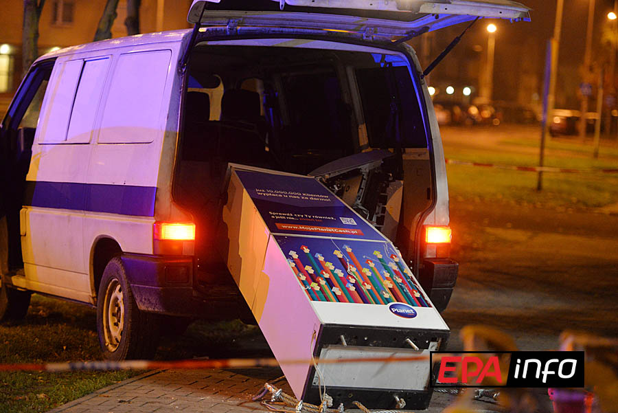 Złodzieje mieli wszystko przygotowane. Po godzinie 1.00 podjechali białym Volkswagenem Transporterem pod sklep Biedronka przy Smugowej. Samochód miał sfałszowane tablice rejestracyjne. Sprawcy rozchylili drzwi przedsionka, gdzie stał bankomat. Zarzucili na urządzenie stalową linę podpiętą do auta. Wyrwali bankomat przymocowany do podłogi, jednak nie udało im się załadować go na samochód. W tym czasie na miejsce jechały już pierwsze patrole policji, powiadomione przez okolicznych mieszkańców. Na miejsce zdarzenia został przywieziony pies policyjny, ale zgubił trop.
