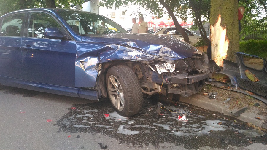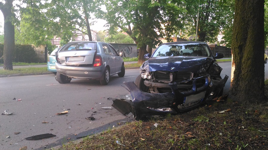 Skoda Fabia włączała się do ruchu z parkingu pizzerii. 35-letni kierujący skręcał w lewo w stronę centrum. Od strony Bugaju nadjechało BMW, kierowane przez 24-letniego mężczyznę. Auto uderzyło w tył czeskiego samochodu, a następnie wylądowało na drzewie. Uderzenie było tak mocne, że Skoda obróciła się o 180 stopni.
