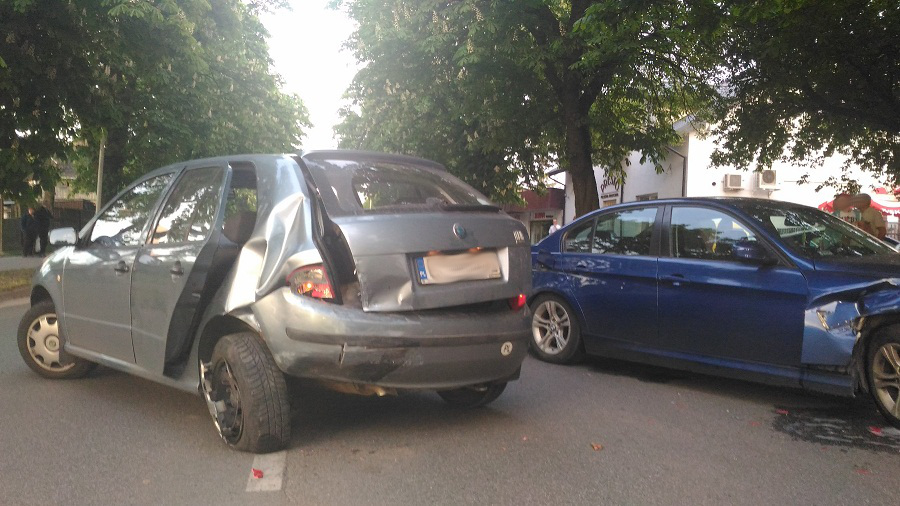 3. Z jaką prędkością musiało jechać BMW, że nie zdążył wyhamować, a Skodę aż obróciło??! Pewnie gonił na „późnym żółtym”.