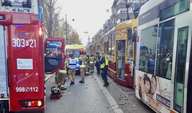 Do groźnie wyglądającego wypadku doszło dziś (13 listopada) o godzinie 12:54 na ulicy Piotrkowskiej 164 w Łodzi (przy al. Mickiewicza). Zderzyły się dwa tramwaje — jeden z nich najechał na tył drugiego, stojącego pojazdu.