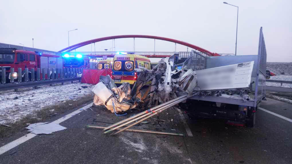 Ze wstępnych ustaleń wynika, że doszło do zderzenia wielopoziomowego, w którym najmocniej ucierpiały pojazdy dostawcze wciśnięte pomiędzy ciężarówki. Na miejscu strażacy prowadzili długotrwałe działania ratownicze z użyciem sprzętu hydraulicznego.