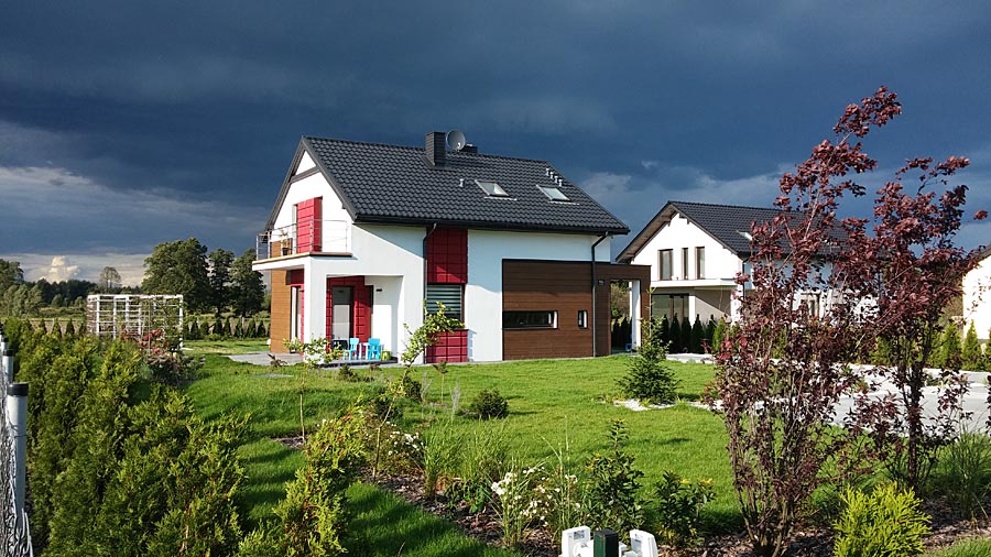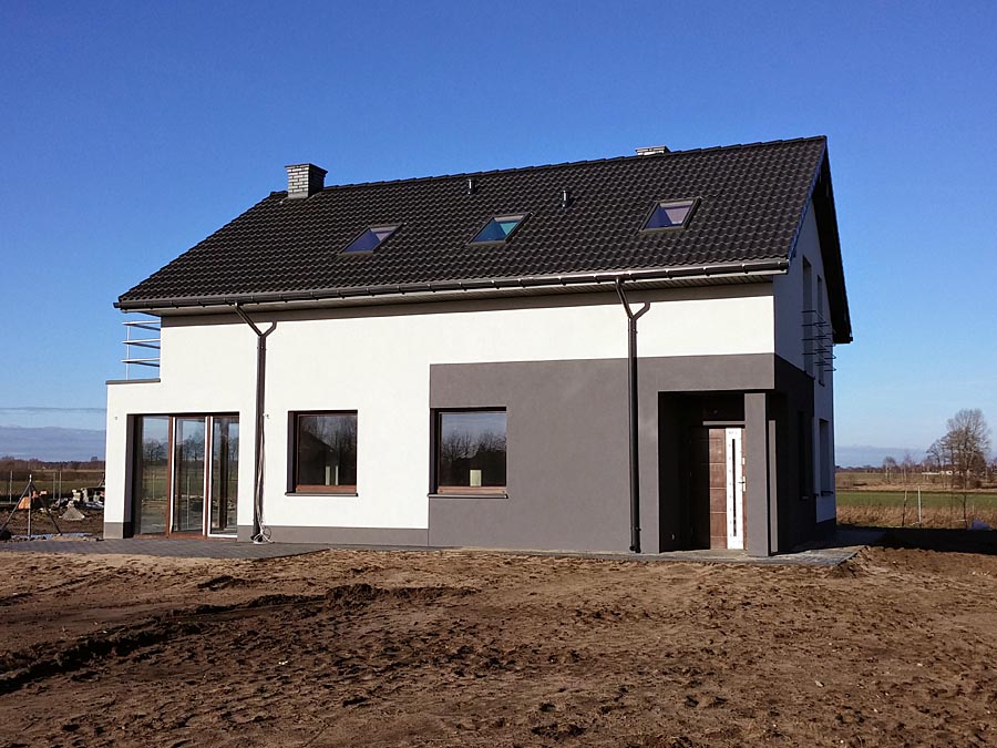 Wewnątrz zrealizowane są wszystkie instalacje – wodna, kanalizacyjna, elektryczna z białym montażem oraz c.o. z kotłem na ekogroszek, instalacją ogrzewania podłogowego i grzejnikami. Do tego wykonane są podwieszane sufity, tynki cem. – wap. i posadzki betonowe. Dolina Pabianki stanowi ciekawą alternatywę dla poszukujących nowego lokum – możemy tu zamieszkać we własnym domu z ogrodem, płacąc za metr kwadratowy mniej niż przy zakupie mieszkania w mieście – 3330PLN/m2 domu (działka w cenie).