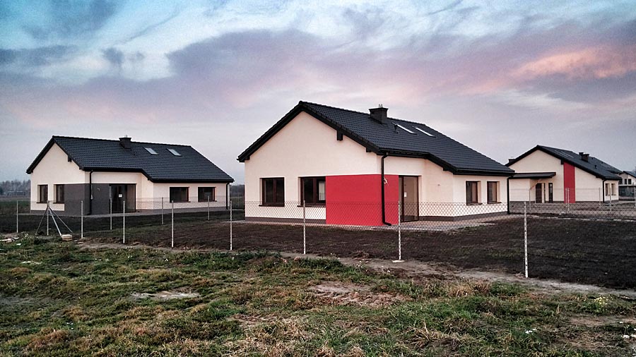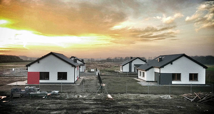 Każdy z wybudowanych domów stoi na ogrodzonej działce, posiada przyłącza: wodociągowe, energetyczne oraz teleinformatyczne. Wszystkie domy budowane są w podwyższonym standardzie deweloperskim, w technologii tradycyjnej – ściany z bloczków ceramicznych ocieplonych 20 cm styropianu, dach w konstrukcji drewnianej, kryty dachówką cementową. Dookoła domów, przed wejściem i na tarasach położona jest kostka.