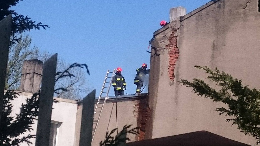 Wezwanie otrzymano po godzinie 9.00. W budynku przy ul. Piłsudskiego 22 zapalił się dach. Na miejsce pojechały 4 zastępy straży pożarnej włącznie z wozem wyposażonym w drabinę mechaniczną. Nie była ona jednak potrzebna, a strażacy dostali się na dach z pomocą zwykłej drabiny.