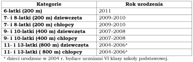 Przy okazji biegu dla dorosłych, zorganizowany będzie wyścig dla dzieci w 7 kategoriach wiekowych: