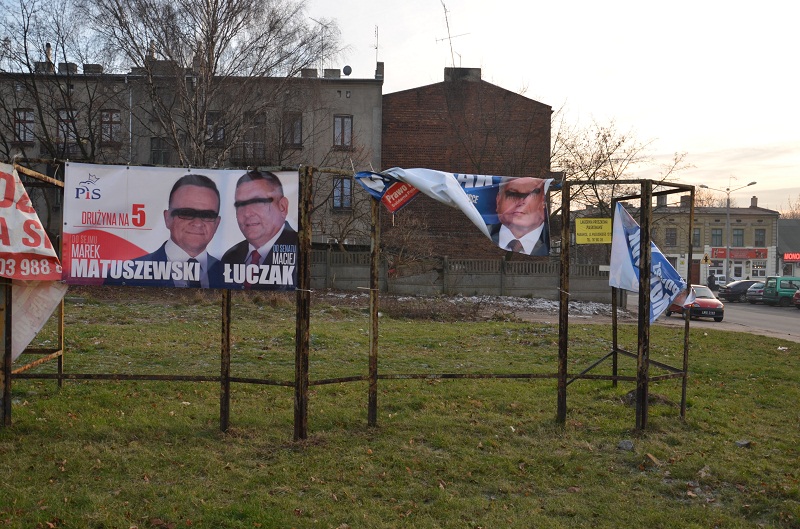 W Pabianicach wciąż można znaleźć banery promujące kandydatów do parlamentu, chociaż od wyborów minął już miesiąc.