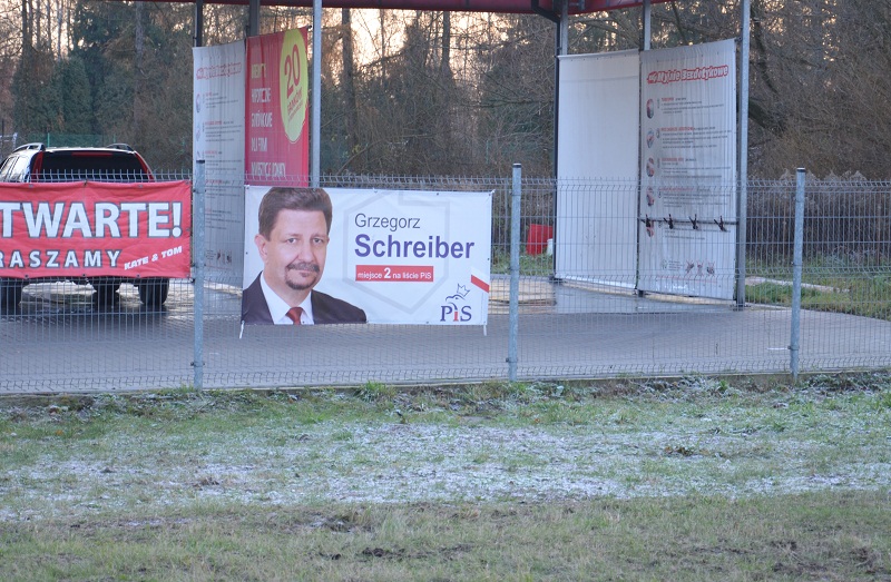 Największym zapominalskim okazał się poseł Grzegorz Schreiber z PiS. Jego baner powieszony na pawilonie handlowym przy ul. Nawrockiego (za ryneczkiem) widać z daleka. Kolejne elementy kampanii wyborczej znajdziemy na rogu ulic Bugaj i Świetlickiego oraz na ul. Jutrzkowickiej (naprzeciwko parkingu cmentarza).