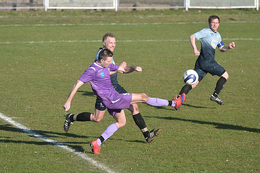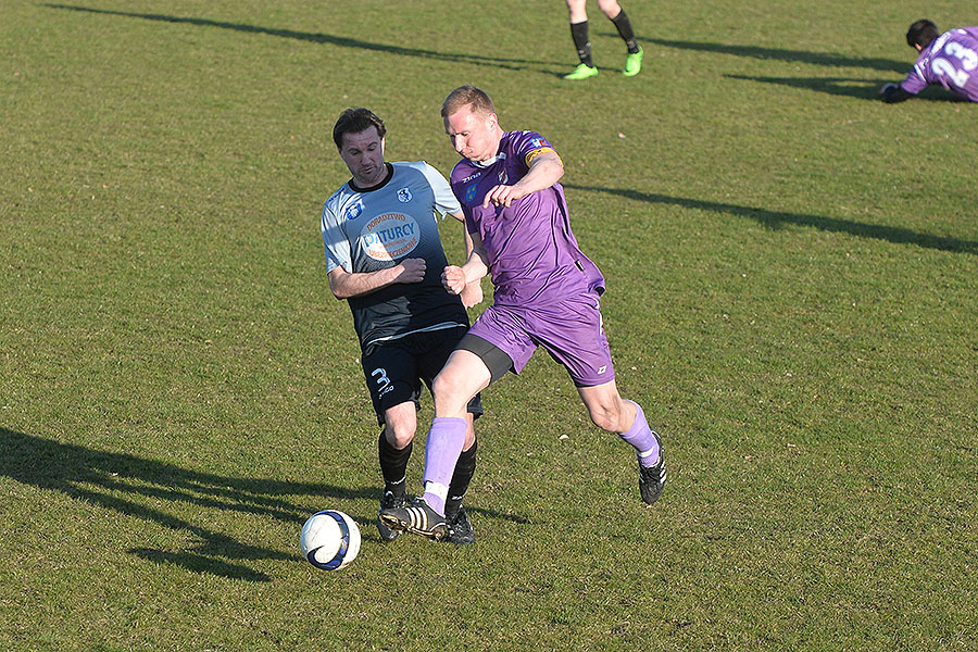 Po przerwie pierwsi okazję mieli „fioletowi”, ale minimalnie niecelnie po rzucie rożnym główkował Szymon Ziółkowski. Chwilę później piłkarze PTC mieli sporo szczęścia. Po szybkim kontrataku gości Bartosz Znojek faulem powstrzymywał wybiegającego sam na sam z bramkarzem 40-letniego Jarosława Soszyńskiego, ale arbiter go oszczędził i mimo usilnych protestów rywali pokazał obrońcy PTC tylko żółtą kartkę. Sto dwadzieścia sekund później „fioletowi” tyle szczęścia już jednak nie mieli gdy po rzucie rożnym w słupek trafił Olejnik, a futbolówka spadła pod nogi stojącego metr od bramki Soszyńskiego, który dopełnił formalności.