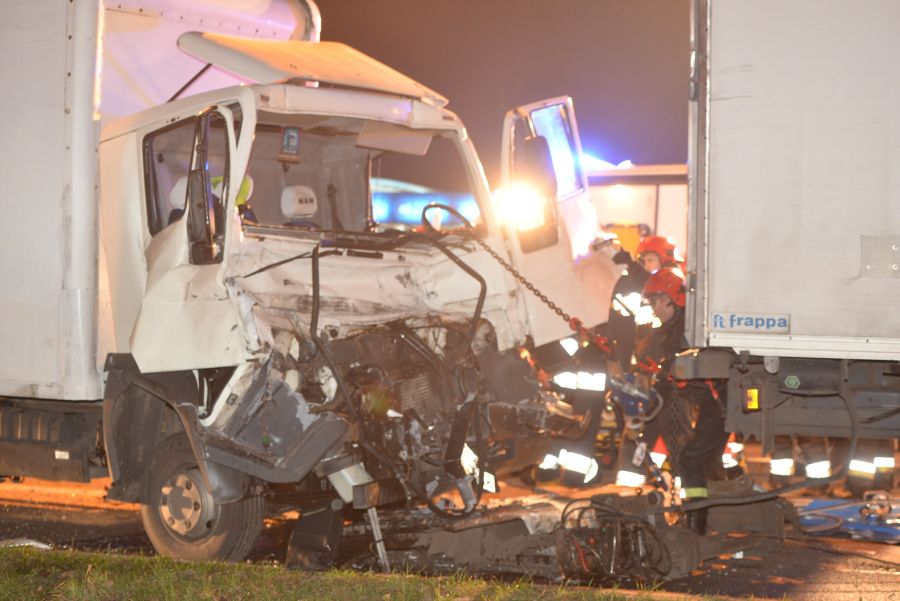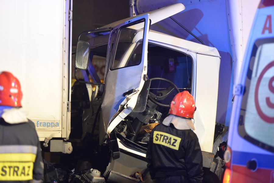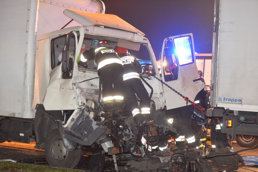 Oba samochody ciężarowe jechały w kierunku Łodzi. Jeden z nich najechał na tył poprzedzającego go pojazdu. W wyniku zderzenia w jednej ciężarówce zmiażdżona została kabina kierowcy. Strażacy kilkanaście minut wyciągali kierowcę by móc przekazać go do karetki pogotowia.