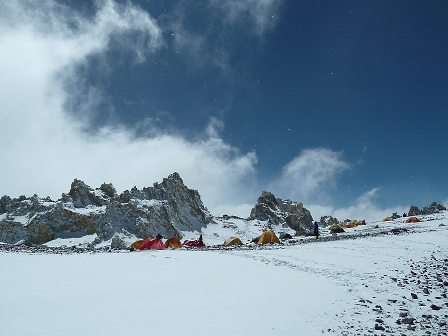 7 lutego 2011 roku Robert Lewera po nocnym locie z Ekwadoru znalazł się w Los Peninettes w Argentynie, a następnego dnia w Plaza de Mulaz – base camp, czyli obozie startowym znajdującym się 4 300 m.n.p.m. Tak Lewera wejście na najwyższy szczyt południowej półkuli relacjonował na swoim blogu: