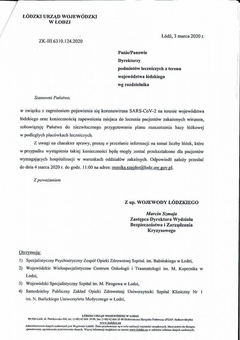 W związku z rozpowszechnianymi w mediach nieprawdziwymi informacjami o rzekomo wydanej decyzji Wojewody Łódzkiego o zamiarze tworzenia nowych oddziałów zakaźnych w szpitalach w województwie łódzkim, w szczególności powiecie pabianickim, stanowczo dementujemy wszystkie pojawiające się w związku z tym informacje.