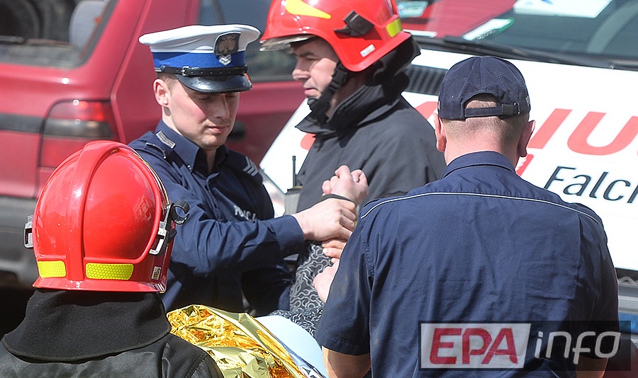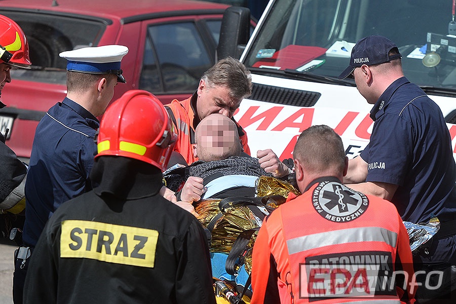 Na miejsce przyjechali strażacy. Wybili tylną szybę w pojeździe, bo z mężczyzną nie było kontaktu. Po chwili dojechała policja i pogotowie. Zapadła decyzja, że kierowca musi trafić do szpitala, ale ten kurczowo trzymał się kierownicy i krzyczał. Ratownicy i funkcjonariusze nie mogli go wyciągnąć. Dopiero zastrzyk (najprawdopodobniej z relanium) podany przez lekarkę pozwolił przetransportować mężczyznę do karetki.