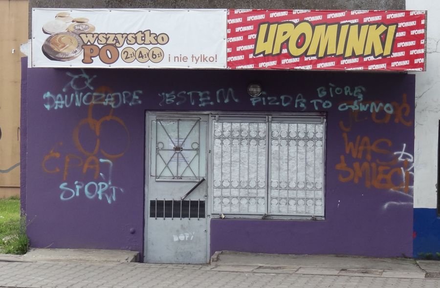 Poprzednio sklep został pomazany niemal równo miesiąc temu, 6 kwietnia. Można o tym przeczytać i obejrzeć zdjęcia TUTAJ.