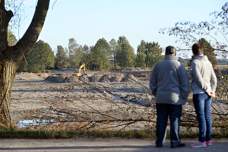Pabianiczanie są mocno ciekawi postępu prac w Lewitynie. A sporo się dzieje, bo śmierdzący namuł z dna zbiorników został prawie całkowicie wybrany. Zburzono też tzw. basen i trybunę. Wyregulowana została linia brzegowa w drugim zbiorniku, który wydaje się teraz nieco większy. Wcześniej brzeg był porośnięty roślinnością. Od ponad tygodnia nie można wejść na mostek i tym samym dostać się na zachodnią część obiektu.