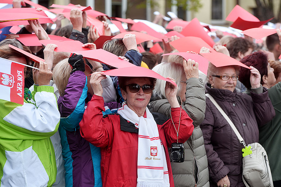 Około 300 osób stanęło do wspólnego zdjęcia tworząc z biało-czerwonych kartoników polską flagę.